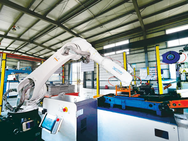 ·成品托盤自動(dòng)計(jì)數(shù)、機(jī)器人碼垛、單絲雙股自動(dòng)捆扎。
